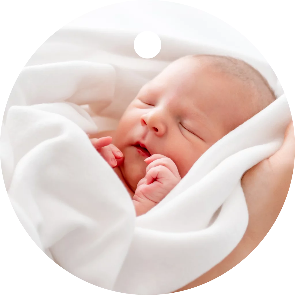 Een label in de vorm van een rondje kan je makkelijk combineren met andere labels. Met dit labeltje kan je altijd een foto van je kleintje toevoegen aan de geboortekaart of de doopsuiker.