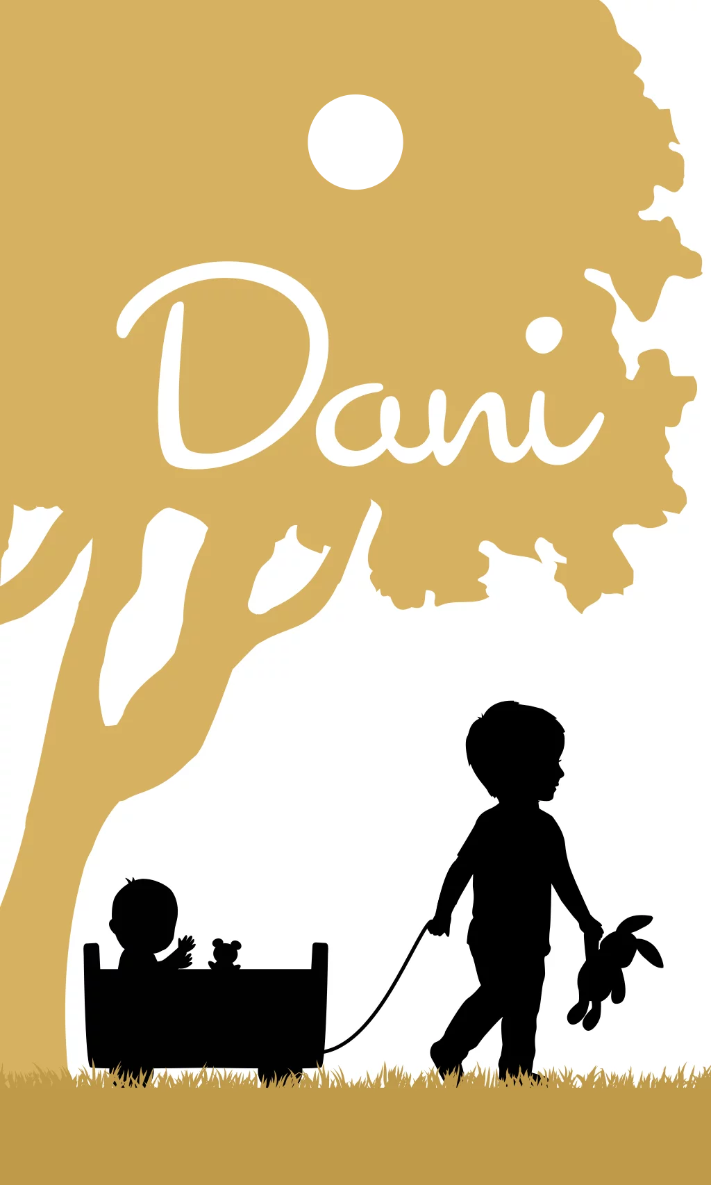 Met dit schattige persoonlijke labeltje maak je de doopsuiker helemaal af. De naam van de baby staat in het wit op de boom met daaronder in het zwart een lief silhouet van twee kindjes.
