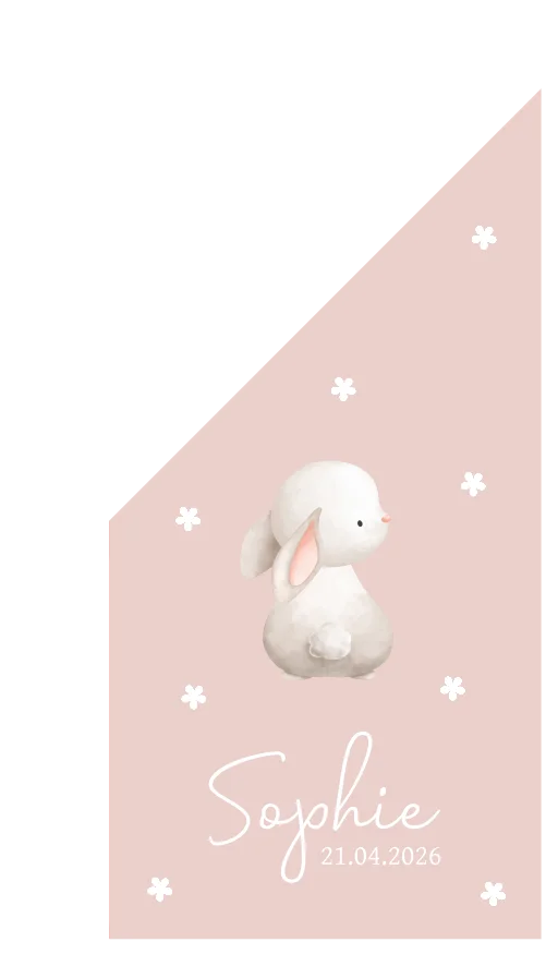 Een mooie geboortevlag passend bij geboortekaartje ovaal met lief konijntje.
