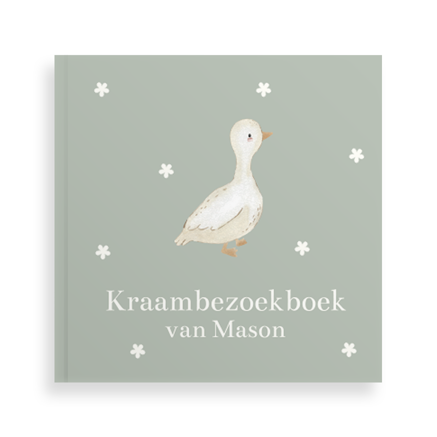 Een mooi kraambezoekboek om de kraamvisite in te laten schrijven. Het kraambezoekboek is passend gemaakt bij geboortekaartje ovaal groen met gansje.