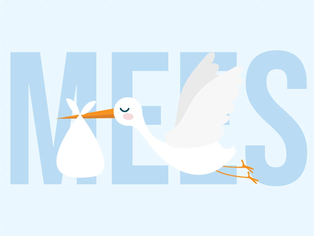 Maak van je geboortekaartje een poster met dit strakke ontwerp waar de naam en een ooievaar op staan afgebeeld in blauwe kleuren.