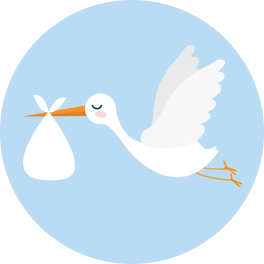 Met deze sluitzegel is het meteen duidelijk wat voor post je ontvangt. De ooievaar staat symbool voor de geboorte van een kindje. De achtergrond is licht blauw maar kan je gemakkelijk in de editor aanpassen naar elke gewenste kleur.