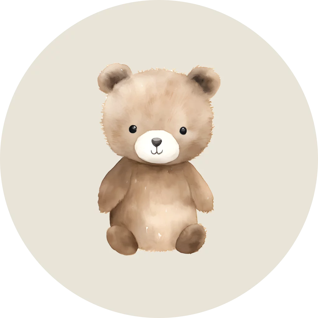 Een sluitzegel met een lief beertje op een beige achtergrond.