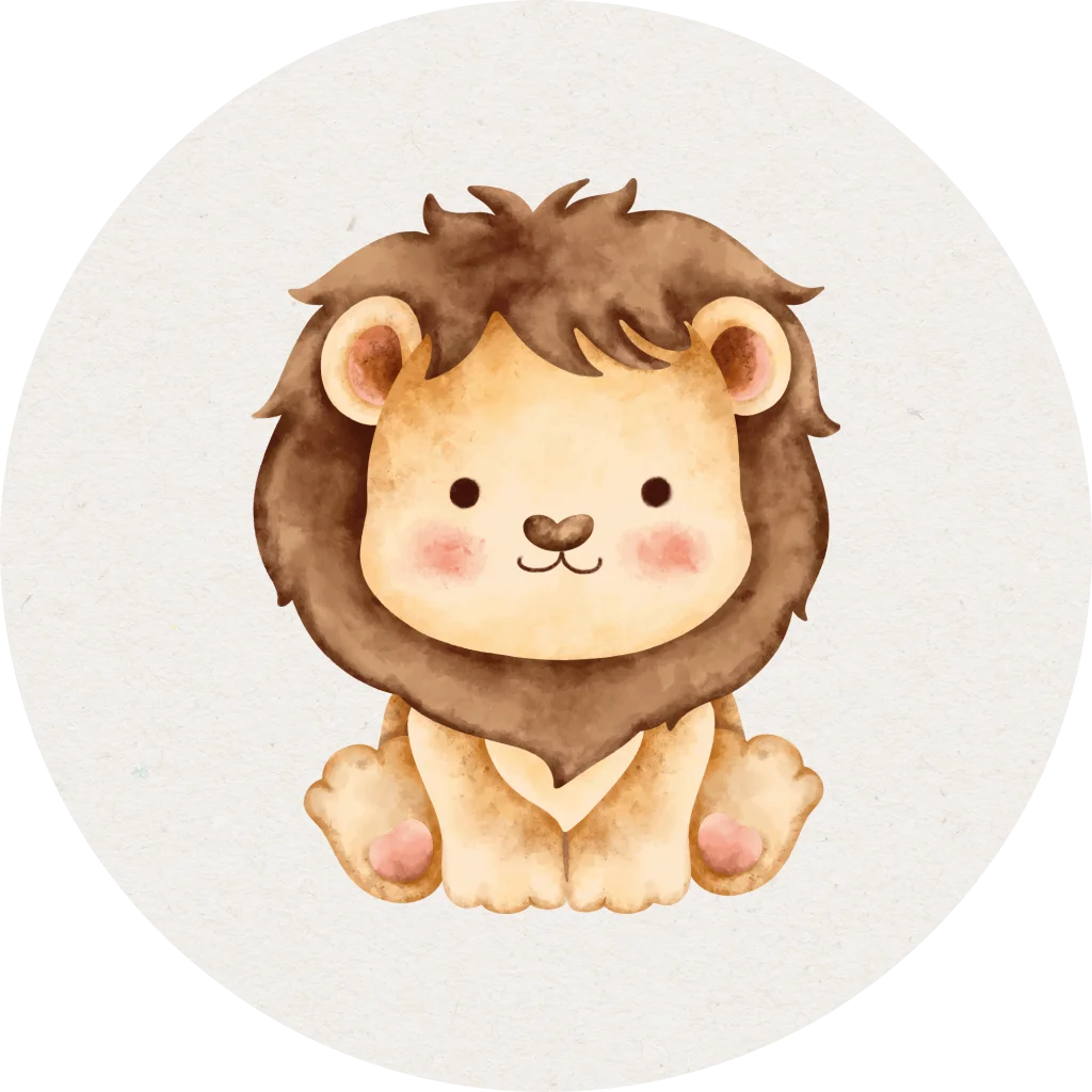 Een beige sluitzegel met in het midden een lief leeuwtje.