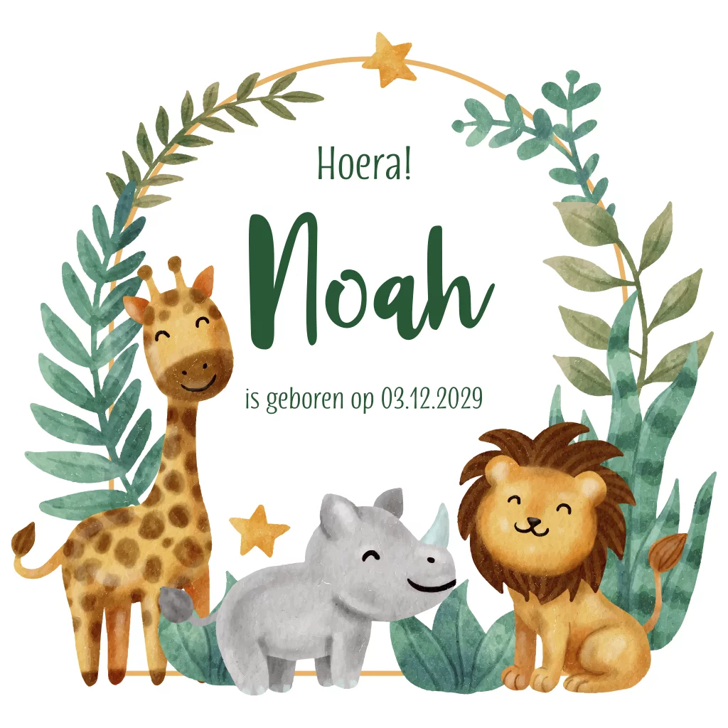 Verliefd geworden op het geboortekaartje ''Geboortekaartje jungle dieren met tropische bladeren''? Dan is het wel heel leuk om daar een bijpassend tuinbord bij te hebben om aan de buren de komst van jullie kleintje te laten zien. De tekst op de kaart, naam en geboortedatum kan je naar wens aanpassen.