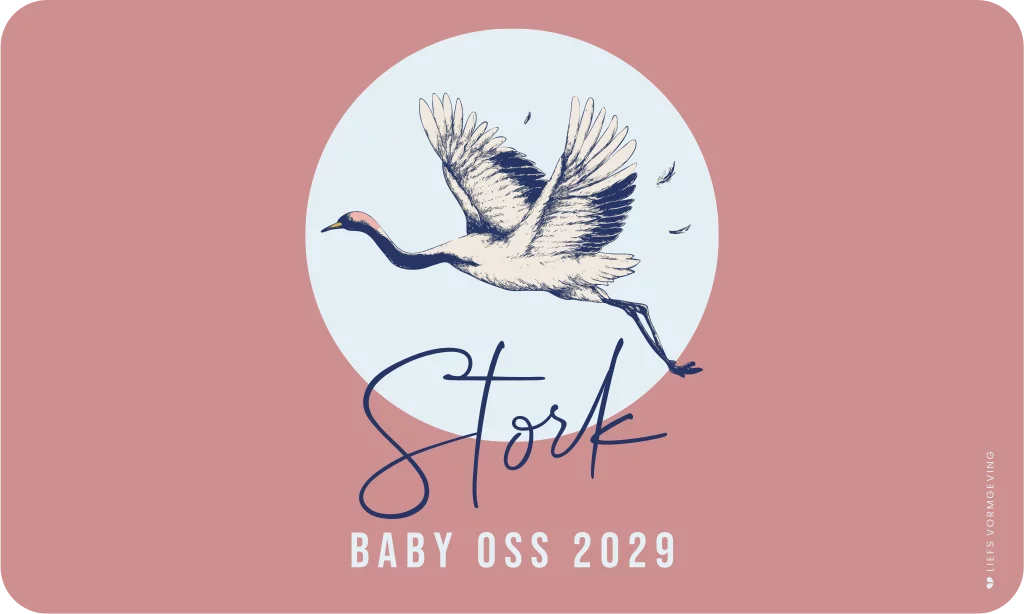 Klassieke ooievaar op een hippe achtergrond. Even iets heel anders dan een typisch wijnetiket. Zo valt de boodschap van de zwangerschap extra op! Verwijder het originele etiket en plak het nieuwe gepersonaliseerde etiket erop om je familie en vrienden te verrassen.