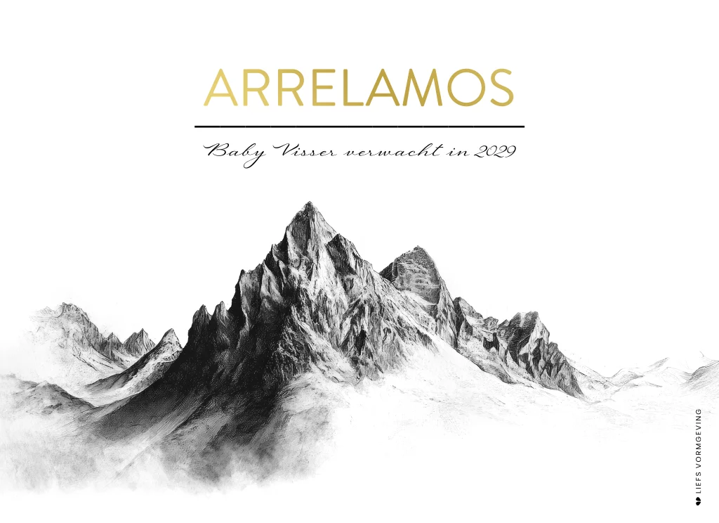 Wijnetiket liggend | 5 stuks zwart wit bergen met gouden tekst