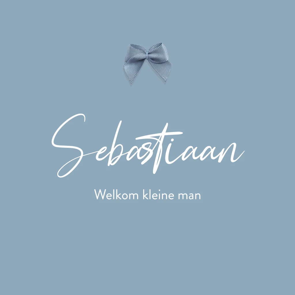 Blauw geboortekaartje met blauwe strik