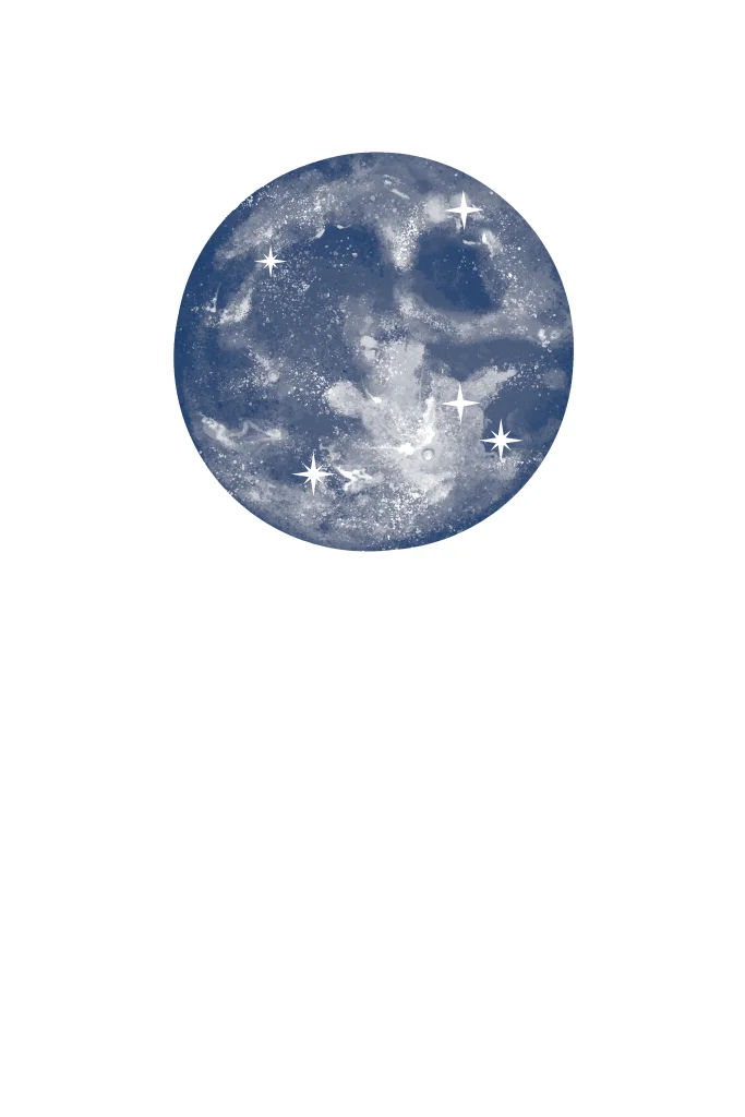 Een enkel geboortekaartje met een donkerblauwe maan op de voorkant met daarbij sterren gedrukt in foliedruk. Aan de achterzijde van de kaart zie je de sterren ook weer terug komen.