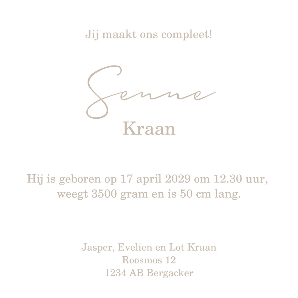 Geboortekaartje broertje en grote zus silhouet in een beige rondje