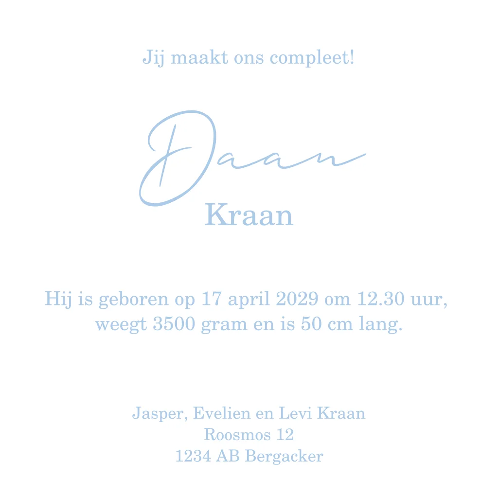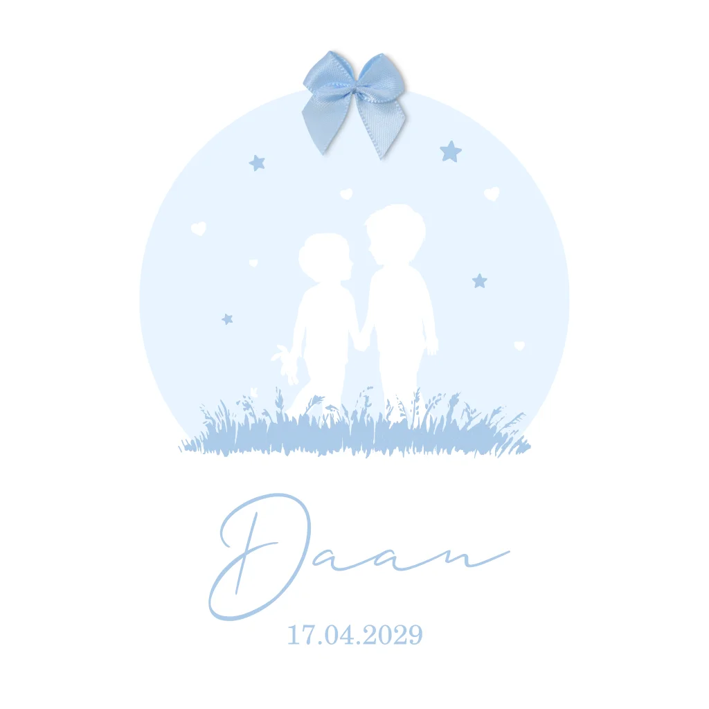 Geboortekaartje broertjes silhouet in een blauw rondje