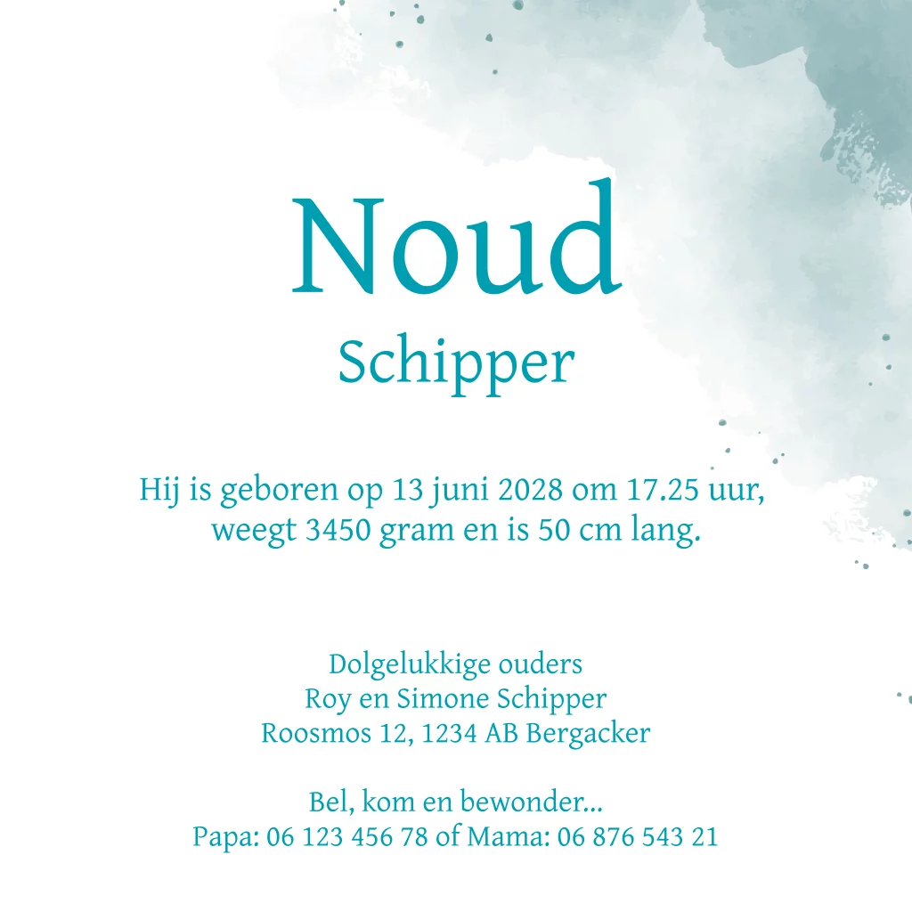 Vierkante kaart met groen blauwe waterverf vlekken en spetters verdeeld over de kaart.