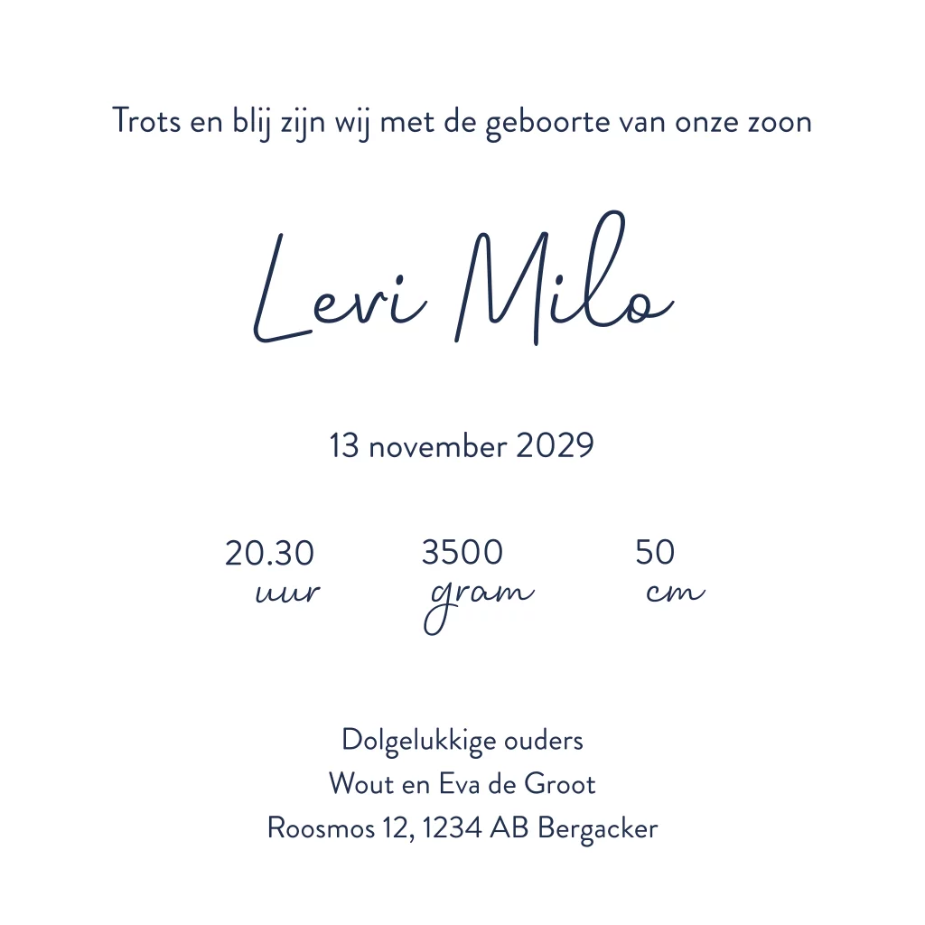 Ons prachtige geboortekaartje met waterverf walvis is een unieke keuze voor gezinnen die op zoek zijn naar een geboortekaartje met een onderwaterthema. Het donkerblauwe kaartje is subtiel versierd met speelse belletjes en wordt gekenmerkt door een indrukwekkende waterverf walvis op de voorkant. De toevoeging van lichte zilverfolie voor de naam en de datum geeft de kaart een luxe uitstraling, perfect voor ouders die op zoek zijn naar een chique en stijlvol ontwerp.