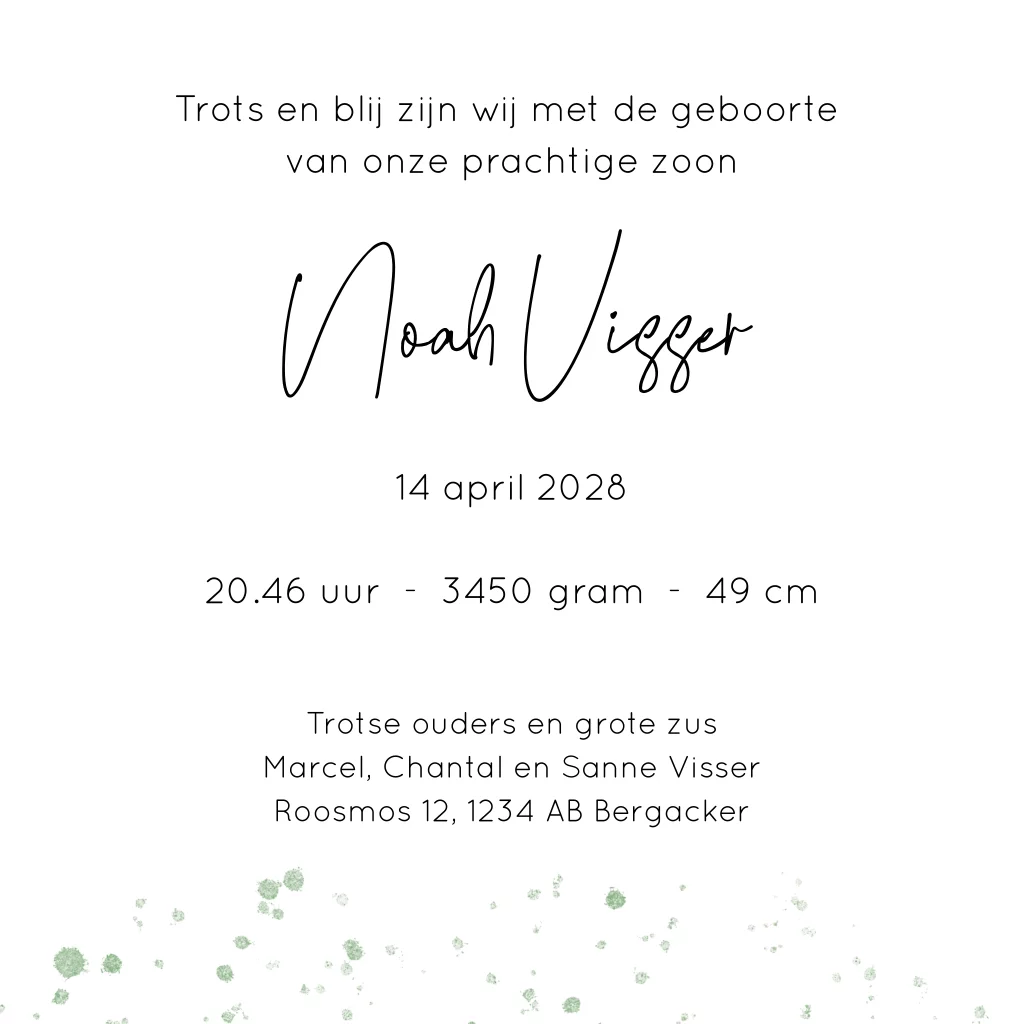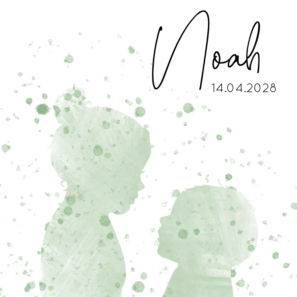 Geboortekaartje groene stippen grote zus en kleine broer silhouet