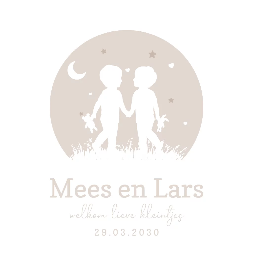 Tweeling geboortekaartje met silhouet van broers in een rondje