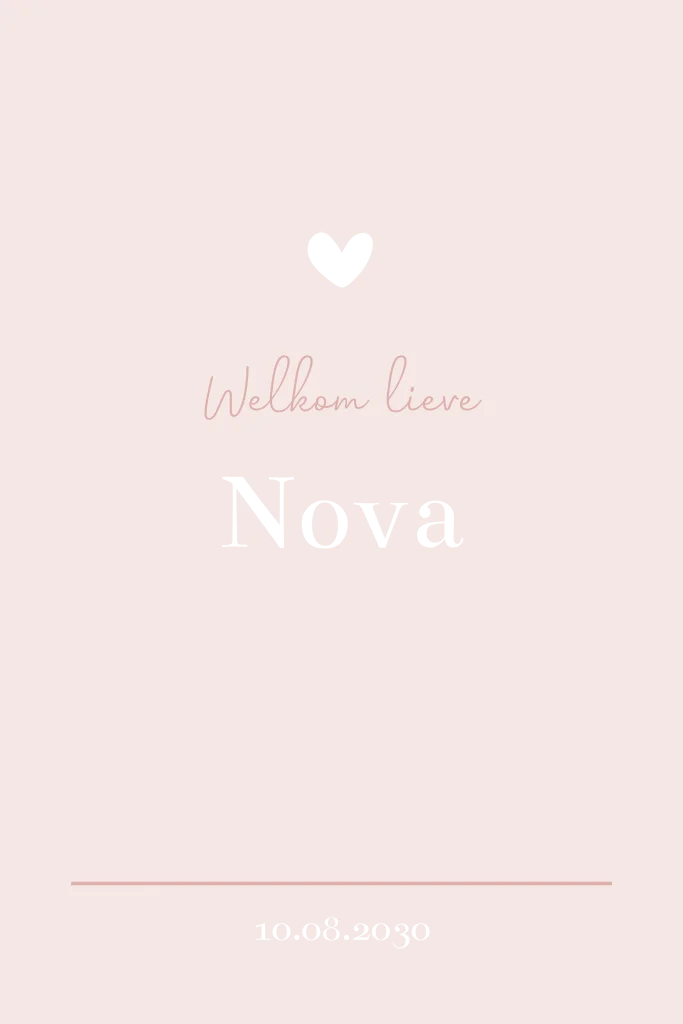 Een mooi strak enkel geboortekaartje met een roze achtergrond kleur. Op de voorzijde staat een klein hartje met daaronder de naam van de baby. Onderaan de kaart staat de geboortedatum. Op beide zijdes is ook gebruik gemaakt van foliedruk. De roze achtergrond kleur is in de editor nog te wijzigen naar elke andere kleur. Lukt het niet? Laat het ons weten en wij helpen je hier graag bij.