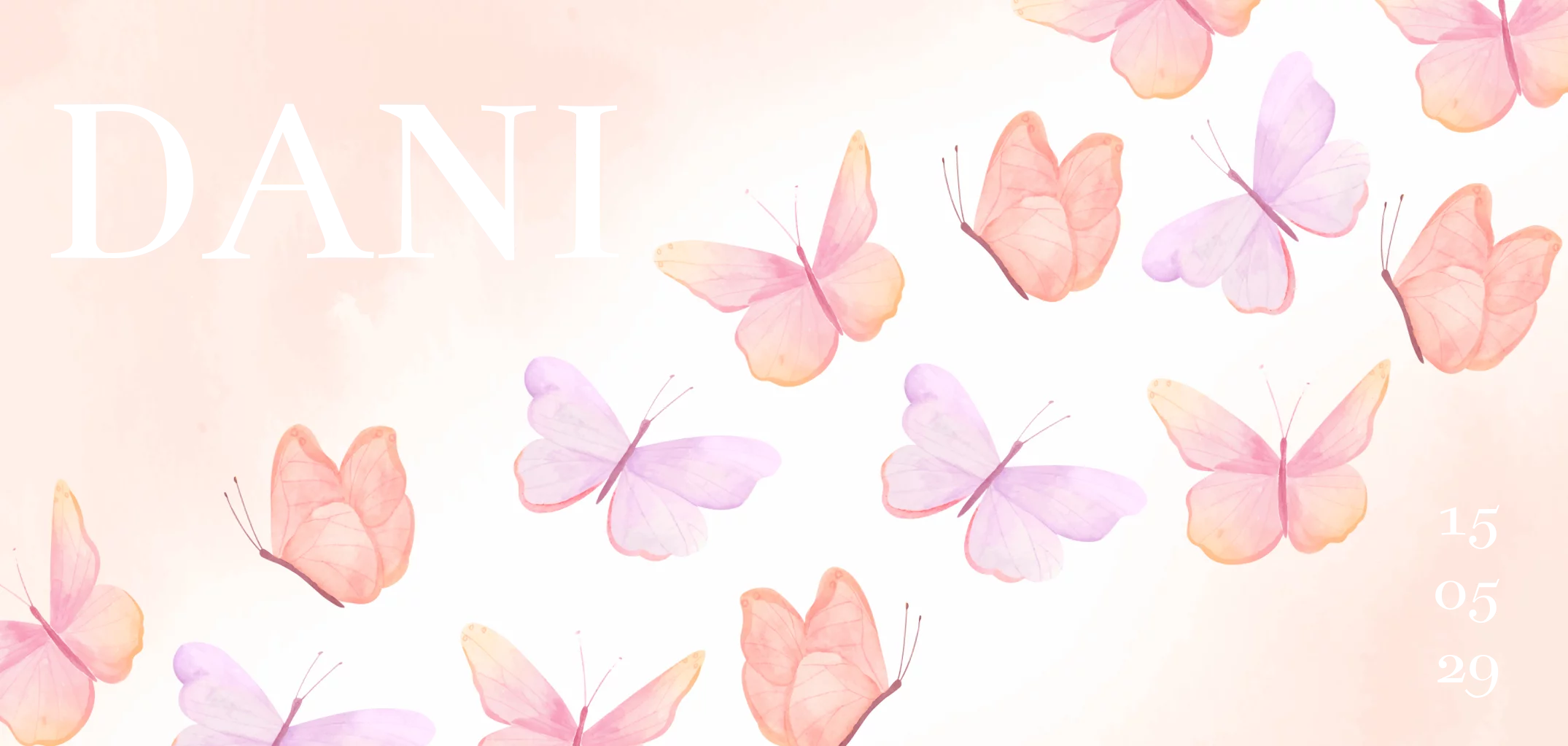 Geboortekaartje vol met roze en paarse vlinders