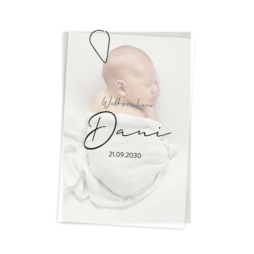 Persoonlijker dan een geboortekaartje met foto kan bijna niet. Wat dit kaartje extra speciaal maakt is het kalkvelletje met de naam er over. Dit geeft de kaart een luxe uitstraling.