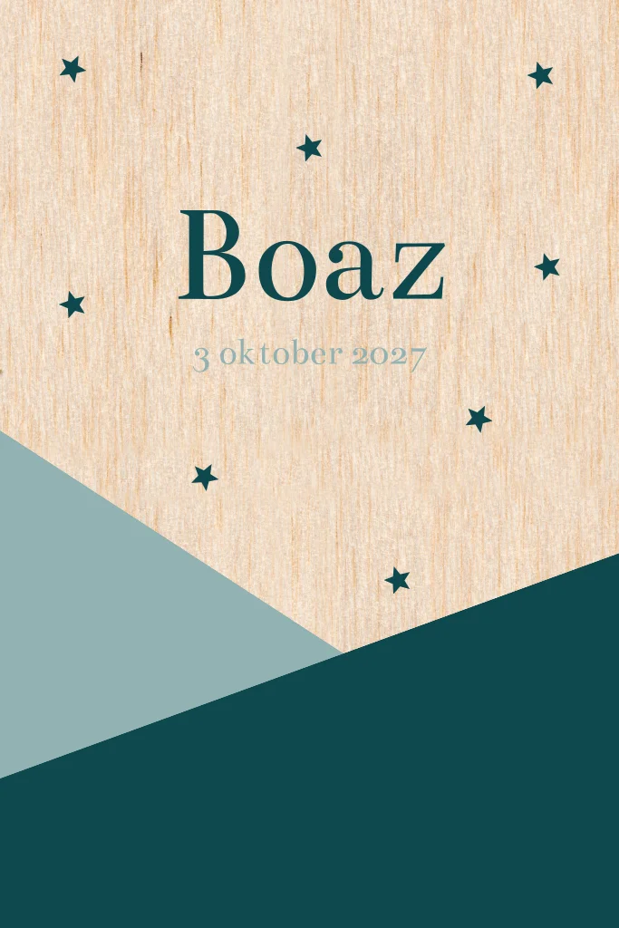 Geboortekaartje hout met schuine vlakken en sterren jongen