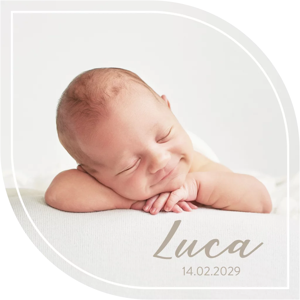 Geboortekaartje in blad vorm met foto