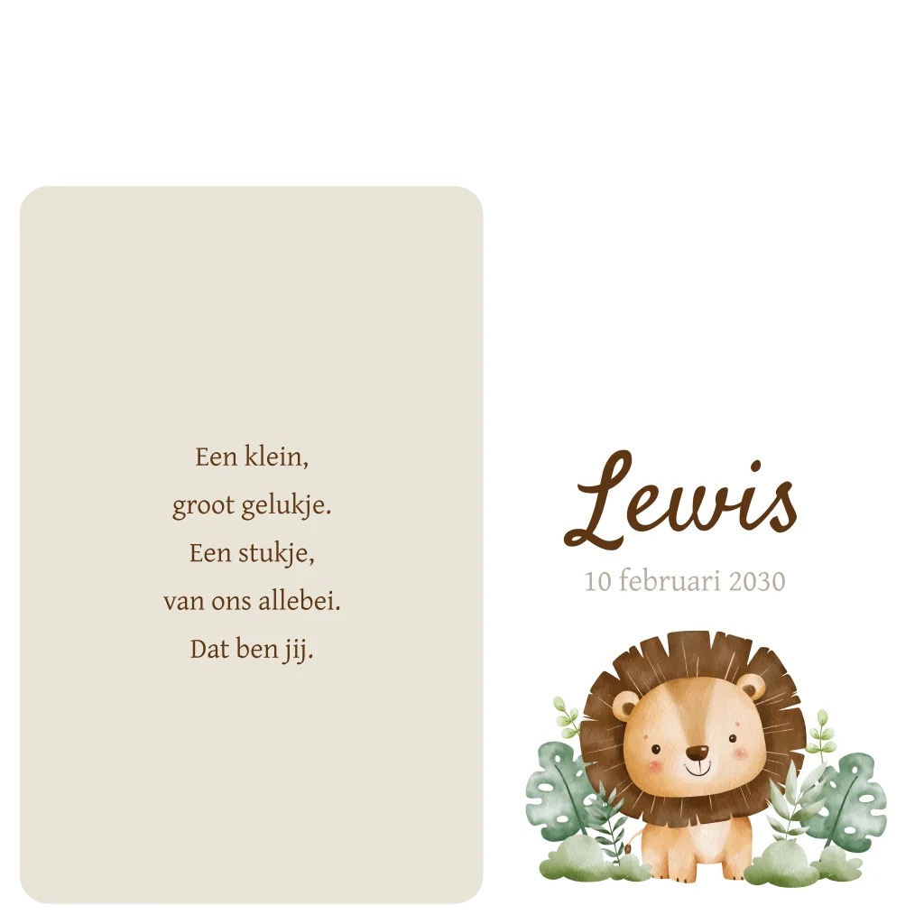 Geboortekaartje stapelkaart beige met stoere leeuw
