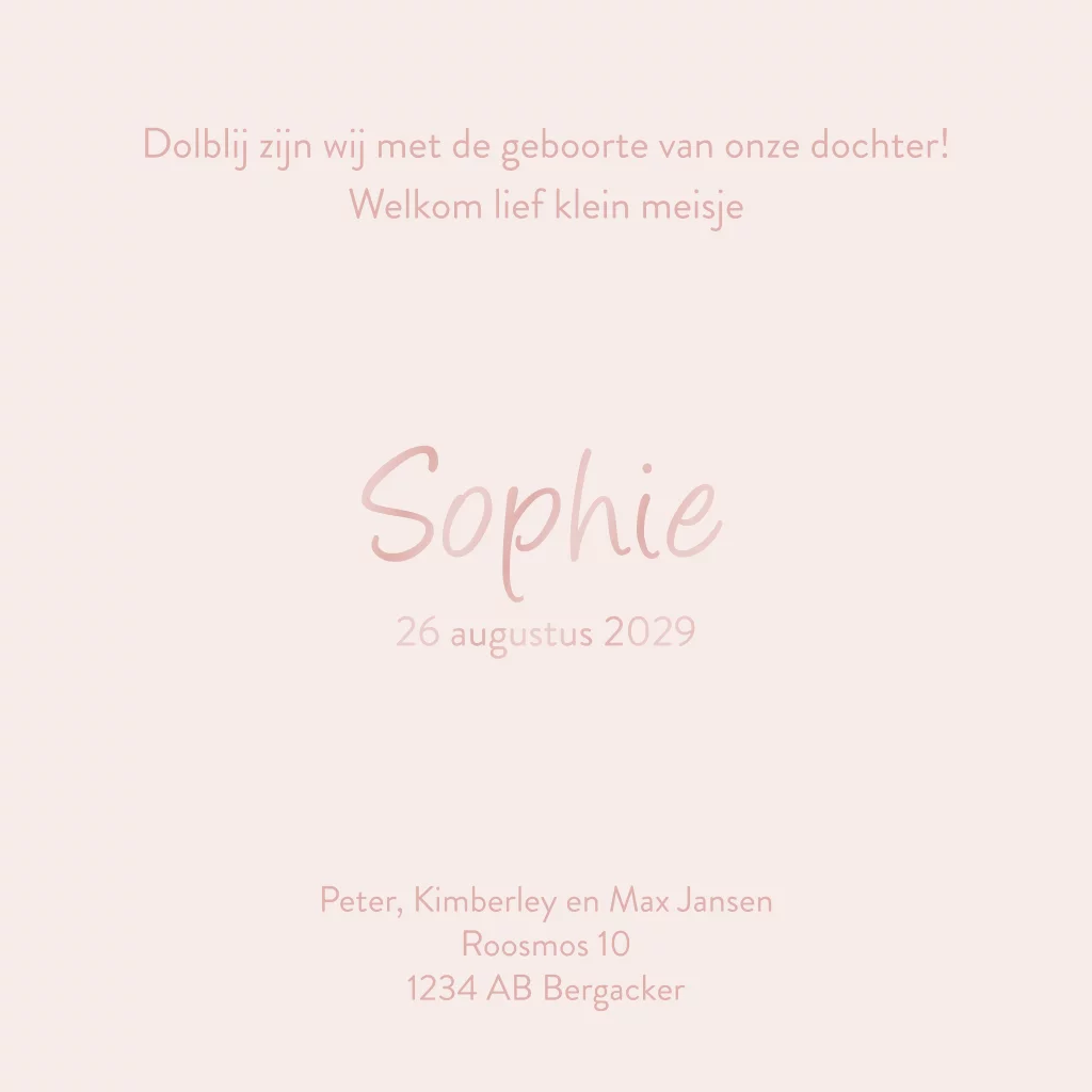 Een lief en schattig geboortekaartje met een doorkijk naar de binnenkant van de kaart waar de naam van de baby zichtbaar is, daaromheen zie je een rand van lieve bloemetjes wat het plaatje compleet maakt. De naam en geboortedatum in de doorkijk zijn in hoogglans gedrukt waardoor de kaart extra nog specialer is en het geheel een romantisch beeld vormt.